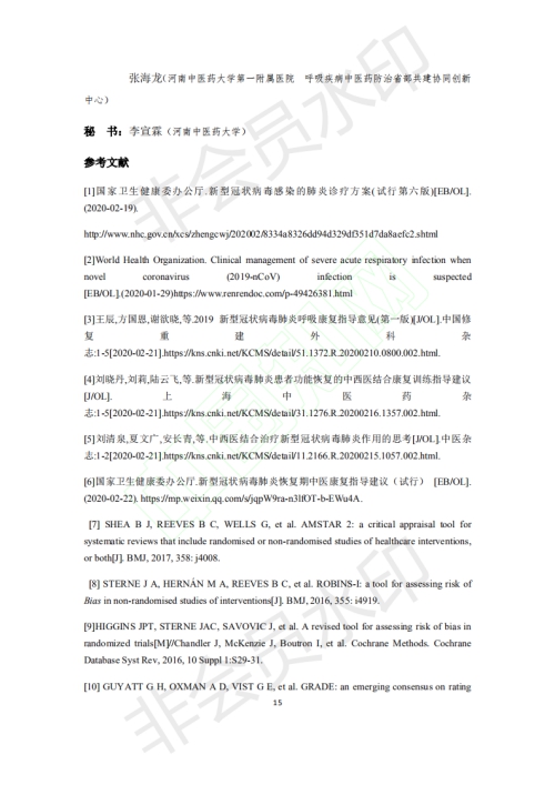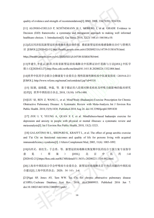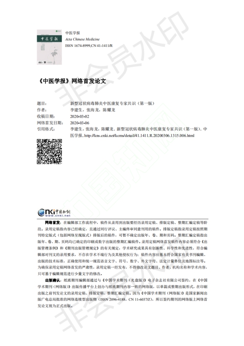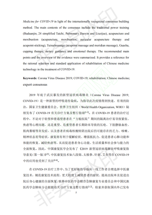In order to effectively alleviate the symptoms of Covid-19 patients, improve discharge rate and promote the recovery of the body and mind after discharge, experts from the Pulmonary Rehabilitation Specialized Committee of the World Federation of Chinese Medicine Societies and the Branch ofPulmonary Disease of China Medical Association of Minorities, led by Professor Li Jiansheng of our university, reached “Expert Consensus on Rehabilitation of Chinese Medicine for Covid-19” with internationally recognized consensus formation method. Its main contents include skill training (Baduanjin, Simplified Tai Chi, respiratory guidance and six character formula), acupuncture and moxibustion (acupuncture, moxibustion, auricular acupuncture and acupoint application), manipulation/ massage (acupoint massage, meridian massage), scraping, cupping, dietary guidance and emotional therapy. The main points of recommendation and the summary of evidence are also included. Journal of Chinese Medicine published the consensus on the Internet on March 6th (approved on March 2nd), which provided a reference for the rational selection and standardized application of TCM rehabilitation technology in the treatment of coronavirus. Professor Li Jiansheng's “Expert Consensus on Rehabilitation of Chinese Medicine for Covid-19” (First Edition) is forwarded here for reference.
